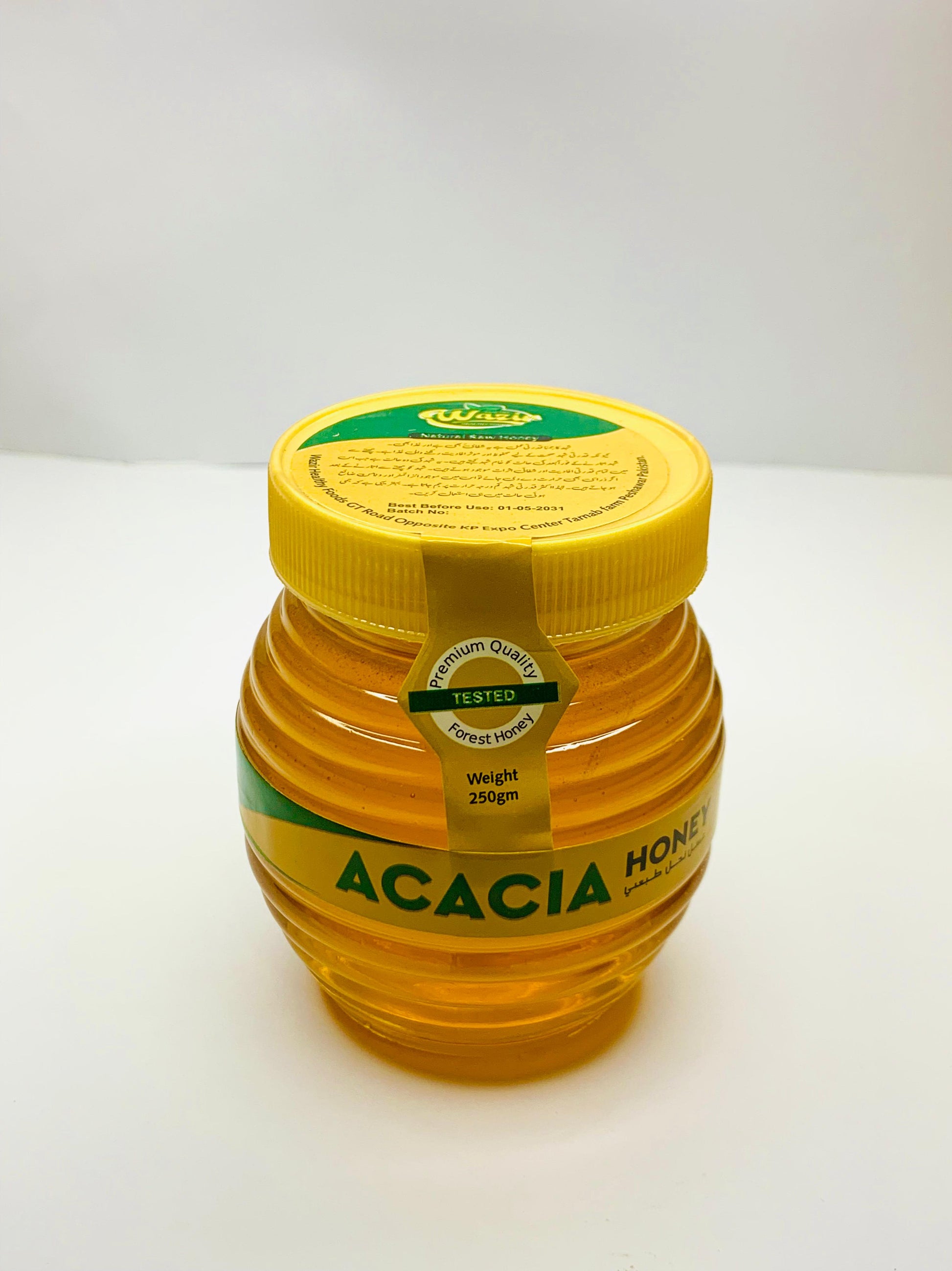 Acacia Honey is a 100% natural and pure honey, harvested from the nectar of Acacia flowers in pristine forest environments. This premium-quality honey is unprocessed, raw, and free from artificial additives or preservatives. Sourced from the best acacia blooms, each 250g jar contains honey that is rich in essential vitamins, minerals, antioxidants, and enzymes, making it an ideal choice for boosting your health naturally.